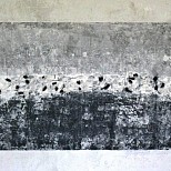 Een globale impressie van het schilderij "Locatedbehaviour" 120x120cm.