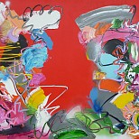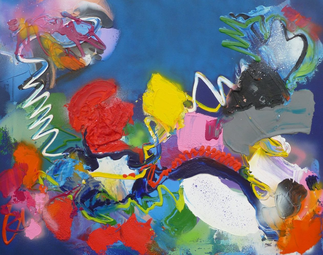 Acryl / mixed op linnen - abstract expressief werk - inclusief baklijst - kleurrijk