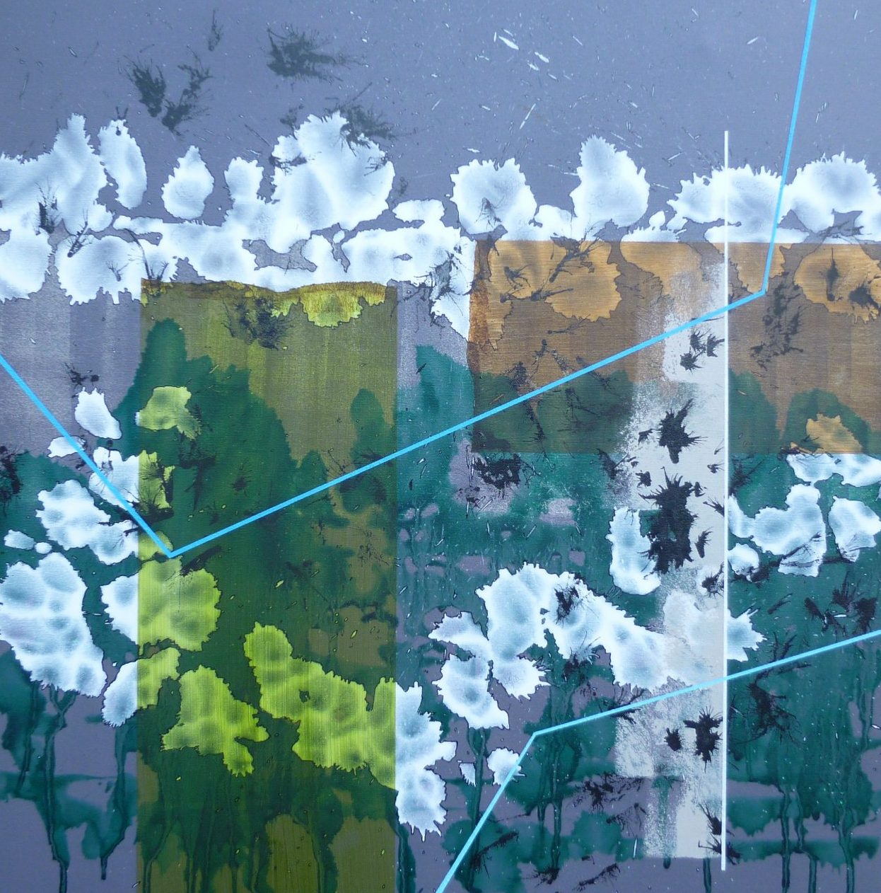 Abstract schilderij uitgevoerd in Olieverf, Lakverf en Inkt op Linnen