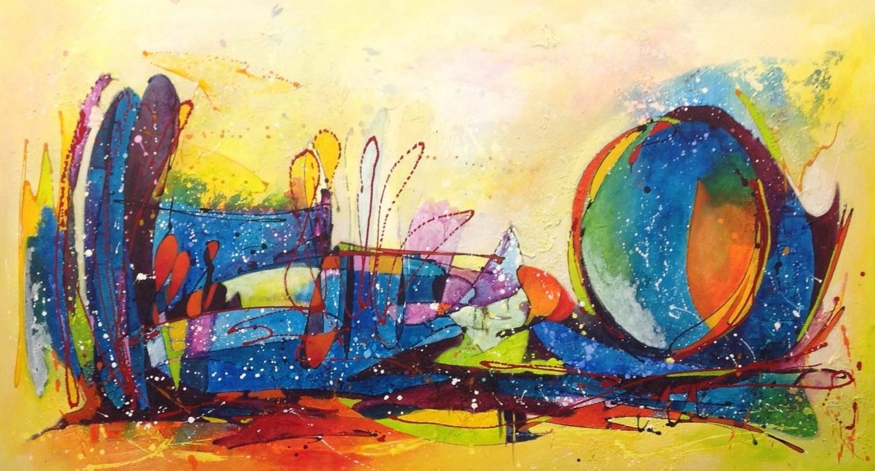 Een globale impressie van het schilderij "The Movement" 180x100cm.
