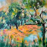 Een globale impressie van het schilderij "In de berm" 150x70cm.