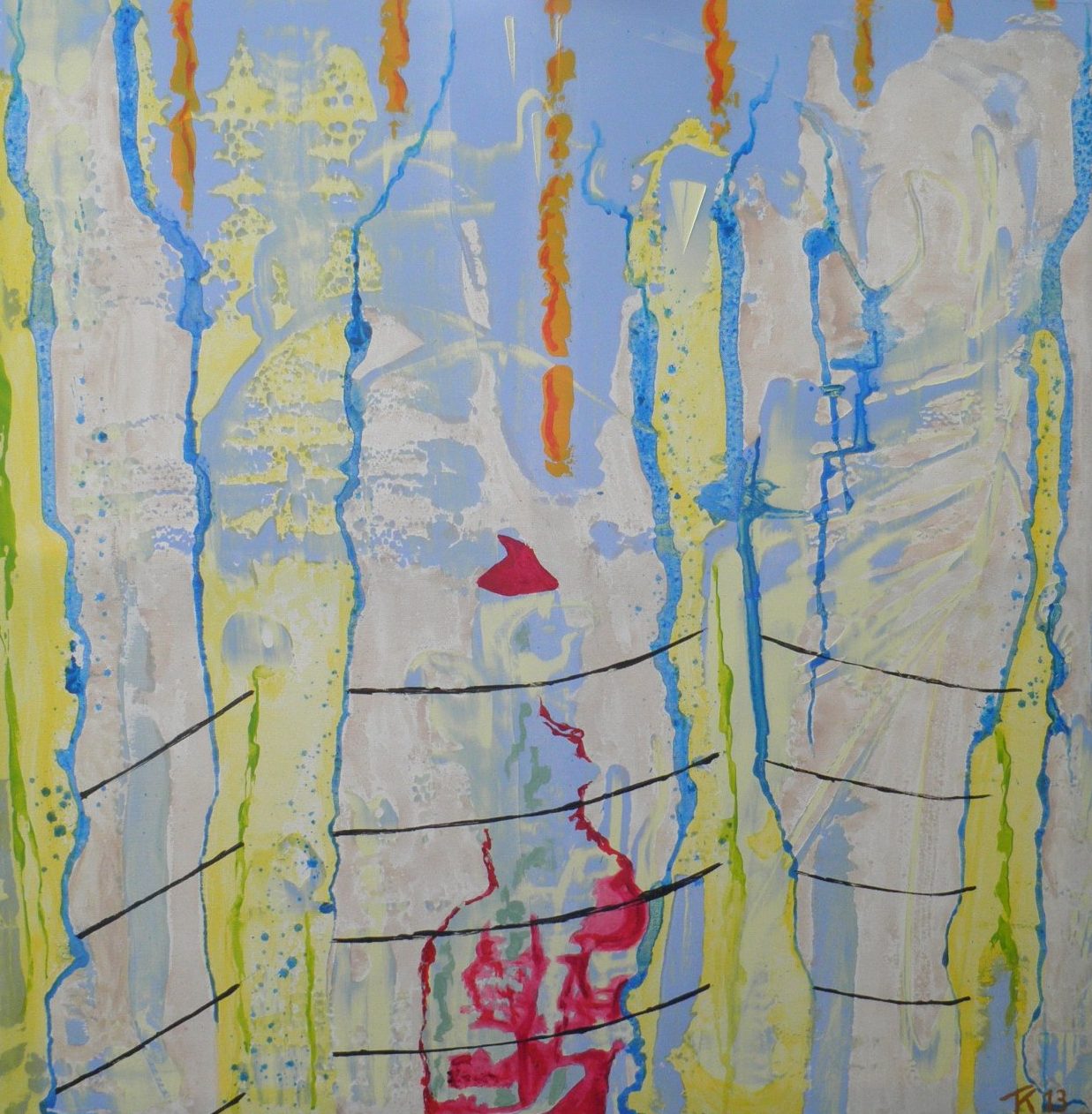 Een globale impressie van het schilderij "De brug" 100x100cm.