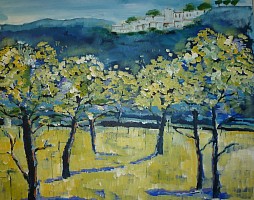 Een globale impressie van het schilderij "Boomgaard" 120x100cm.