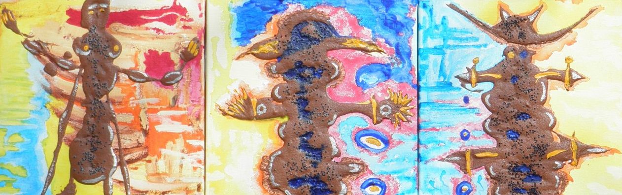 Drie luik acryl op katoen