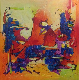Een globale impressie van het schilderij "Communication 1" 120x120cm.