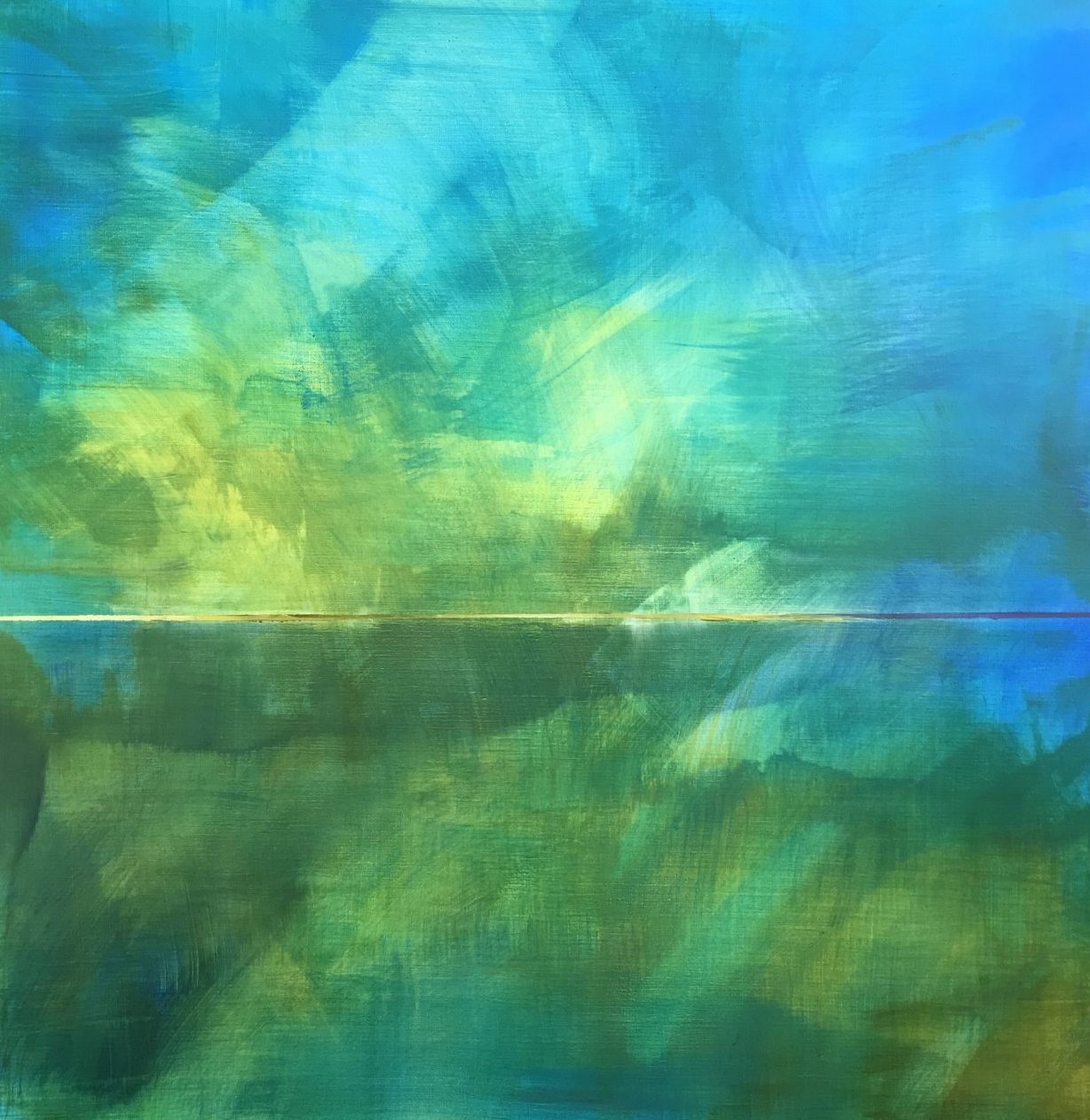 Een globale impressie van het schilderij "Reverie d 2017" 120x120cm.