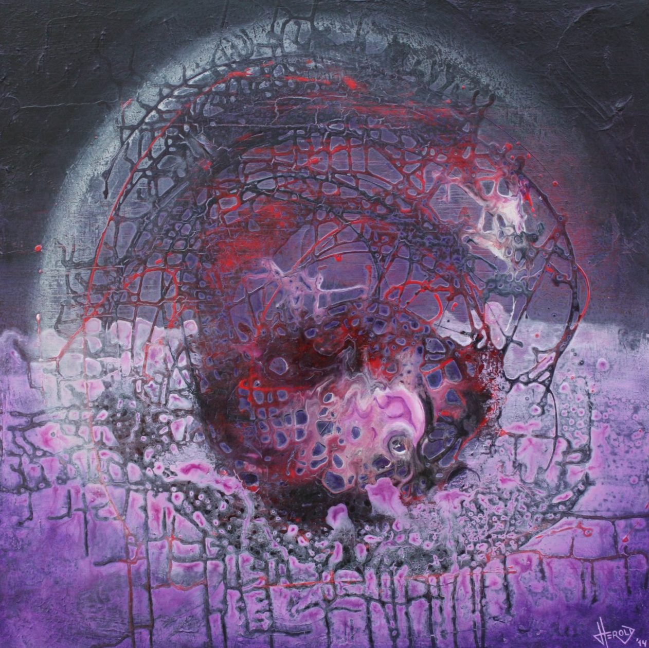 Een globale impressie van het schilderij "Primordiality" 70x70cm.