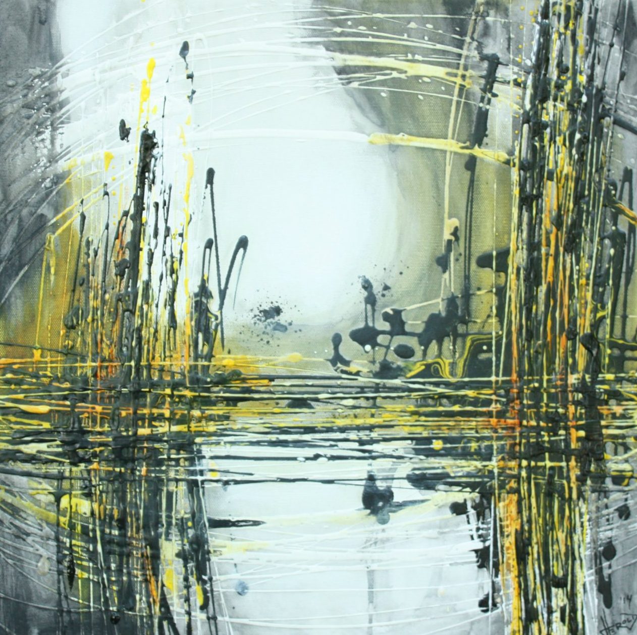 Een globale impressie van het schilderij "Silvery moon over Golden Lake" 40x40cm.
