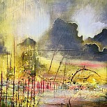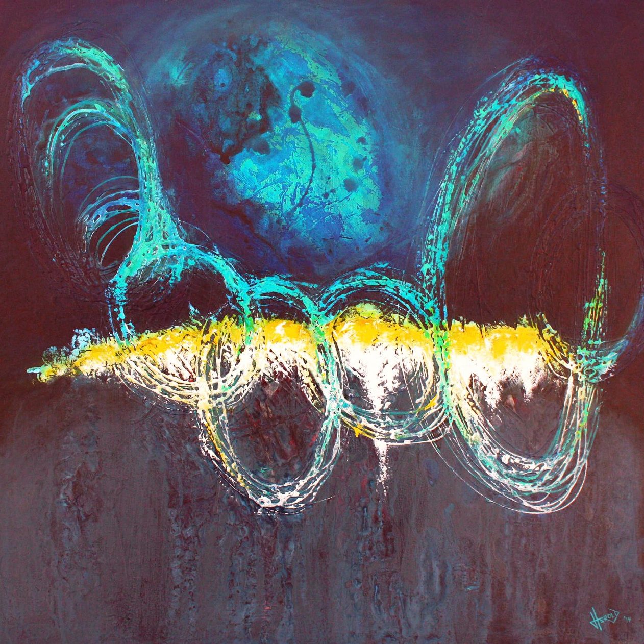 Een globale impressie van het schilderij "Parallel Singularities" 100x100cm.