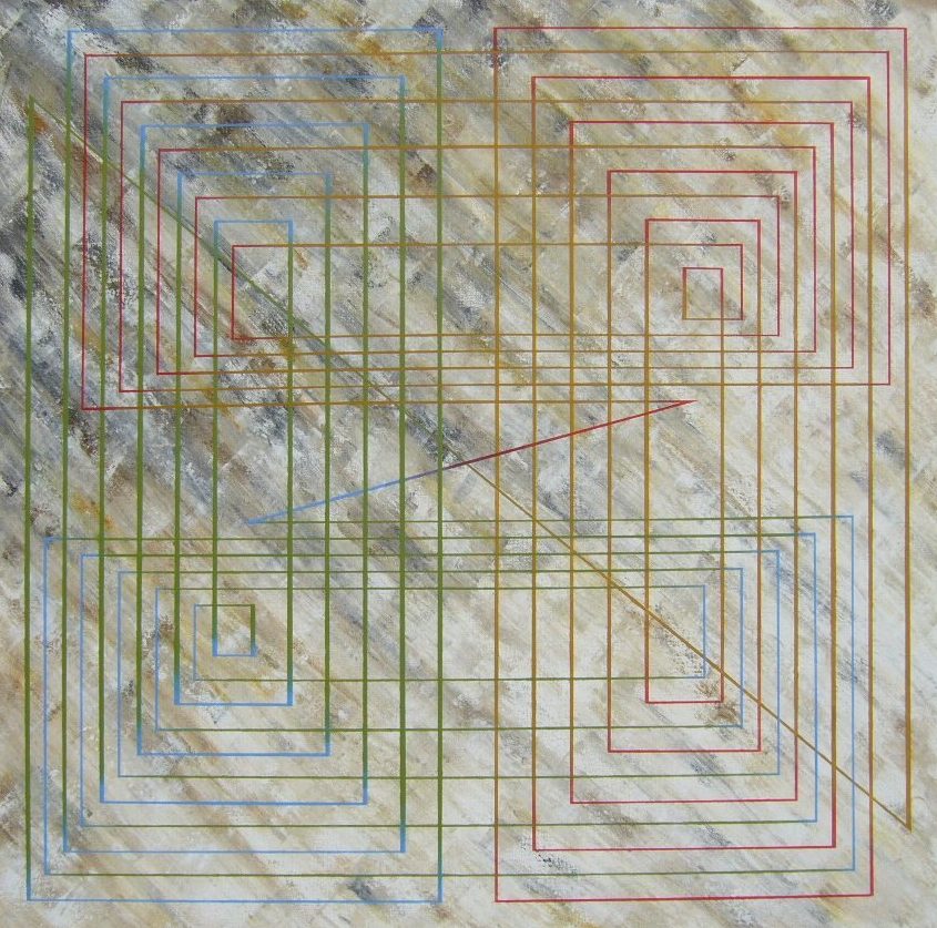Een globale impressie van het schilderij "Oneindige lijn" 100x100cm.