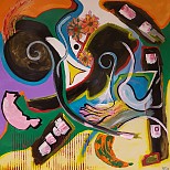 Een globale impressie van het schilderij "Freedom within" 100x100cm.