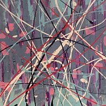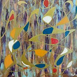 Een globale impressie van het schilderij "Praia (Dancing around the World)" 80x120cm.