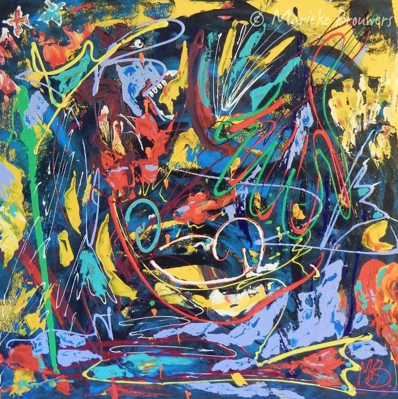 Een globale impressie van het schilderij "About yellow" 100x100cm.