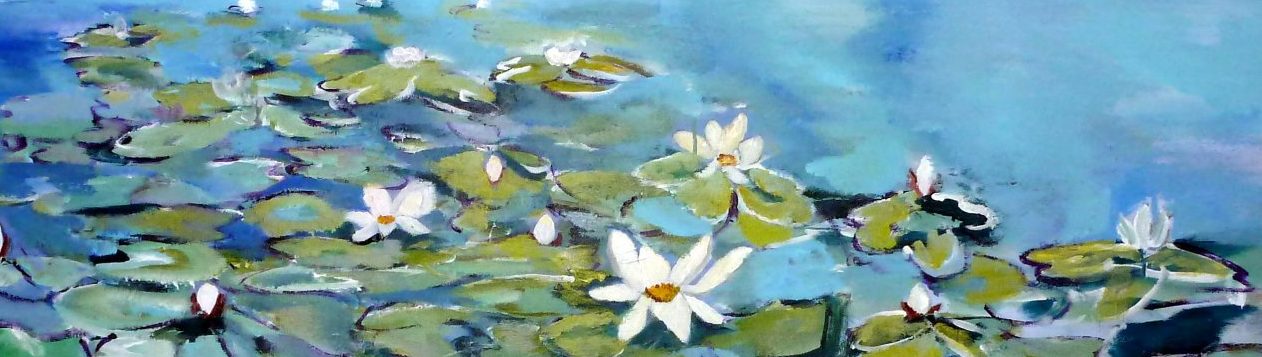 Een globale impressie van het schilderij "Waterlelies" 120x40cm.