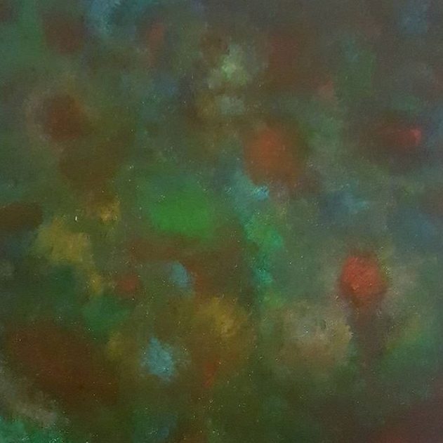 Acrylverf op linnen met herfstkleuren, geïnspireerd door een wandeling in het bos. Intuïtief / abstract schilderij. Opgebouwd uit diverse lagen verf met een dep techniek.