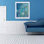 Voor een sfeer impressie zie verderop mijn galerie. In de foto met woonkamer is het schilderij op een andere manier tentoongesteld.