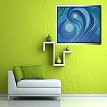 Het doek is op 4 verschillende manier op te hangen, afhankelijk van eigen smaak en sfeer die je wenst. Tijdens het creatieproces heb ik telkens het doek gedraaid, waardoor er een bijzonder effect ontstaat.