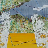 Een globale impressie van het schilderij "Line-up (first)" 80x80cm.