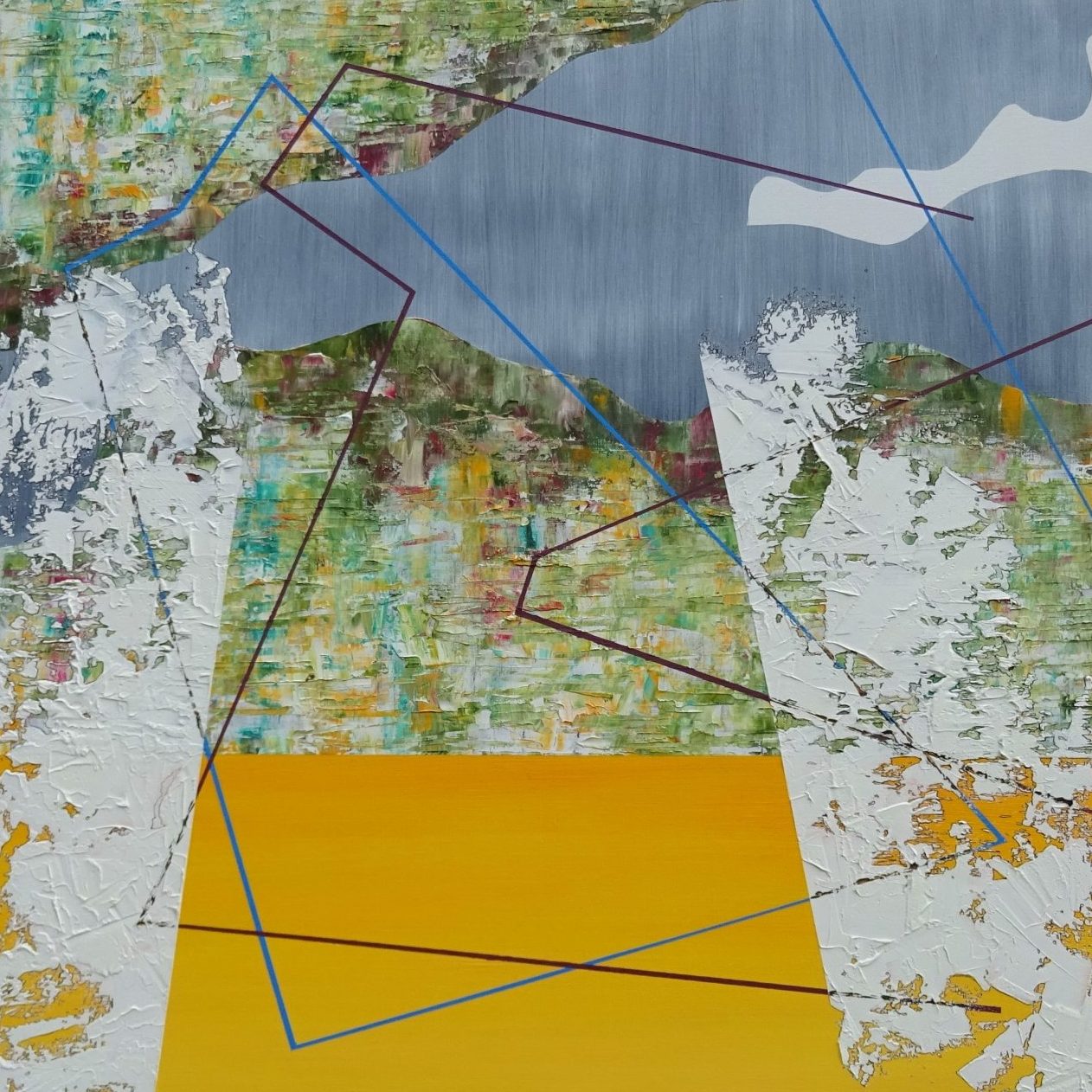 Abstract schilderij uitgevoerd in olieverf en inkt op linnen. 80 x 80 cm. Ingelijst (stalen baklijst) en gesigneerd. Prijs op aanvraag.