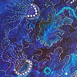 Een schilderij opgebouwd uit diverse lagen acrylverf, waarbij de kleuren in elkaar overvloeien. Daarna heb ik de lijnen gevolgd met een dot techniek, waarbij je kleine stippen maakt die vervolgens een eigen leven beginnen te leiden. Hier ontstond een onderwater beeld met allerlei (fantasie) zee dieren. Geschikt voor bijvoorbeeld een badkamer of kinderkamer.