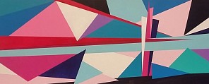 Een globale impressie van het schilderij "Into the triangle" 140x56,5cm.