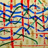 Een globale impressie van het schilderij "Gedachtenstroom" 140x100cm.