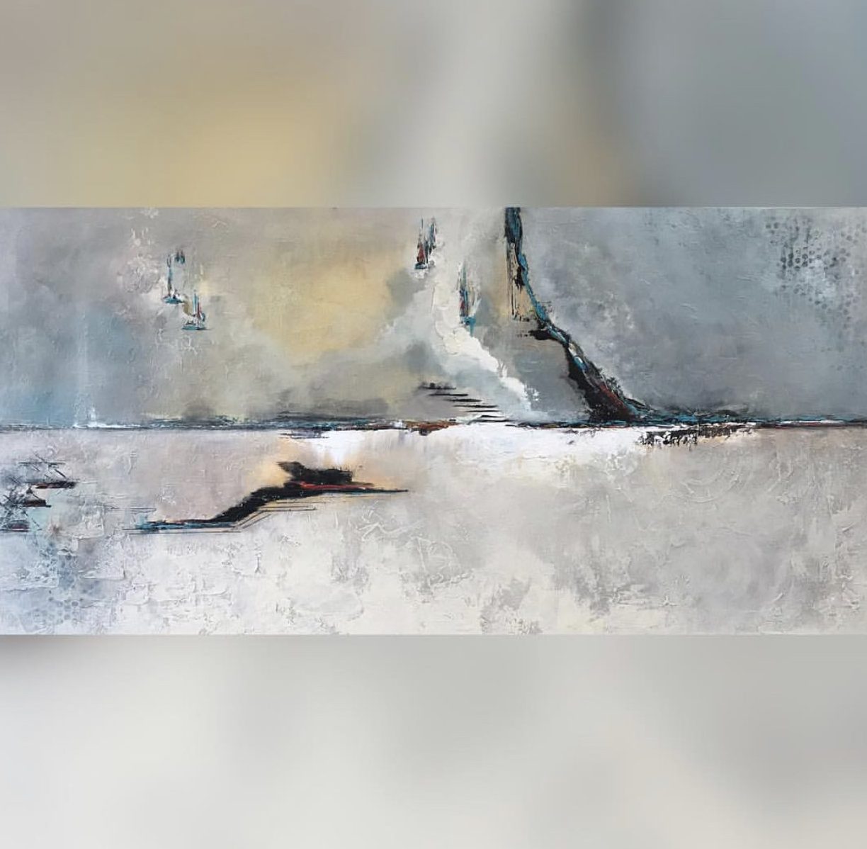 Een globale impressie van het schilderij "Flow" 120x60cm.