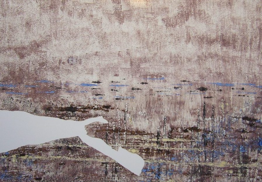 Een globale impressie van het schilderij "GESCHONDEN LAND nr. 4" 76x56cm.