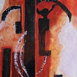 Een globale impressie van het schilderij "Geen titel" 80x80cm.