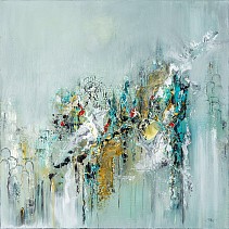 Een globale impressie van het schilderij "Find the silence" 100x100cm.