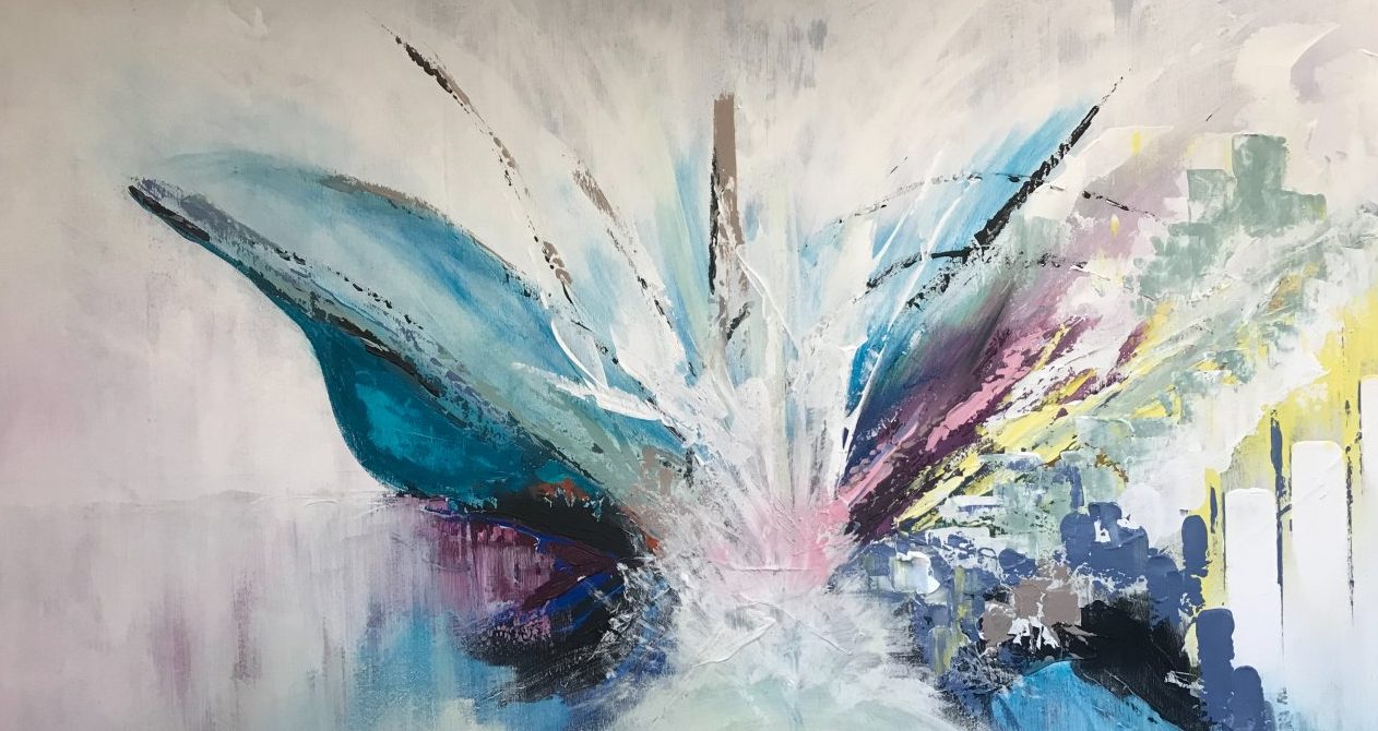 Een globale impressie van het schilderij "Honest cheerfulness" 150x100cm.