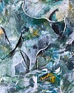 Een globale impressie van het schilderij "Blueflow-in the storm of the Ocean" 50x50cm.