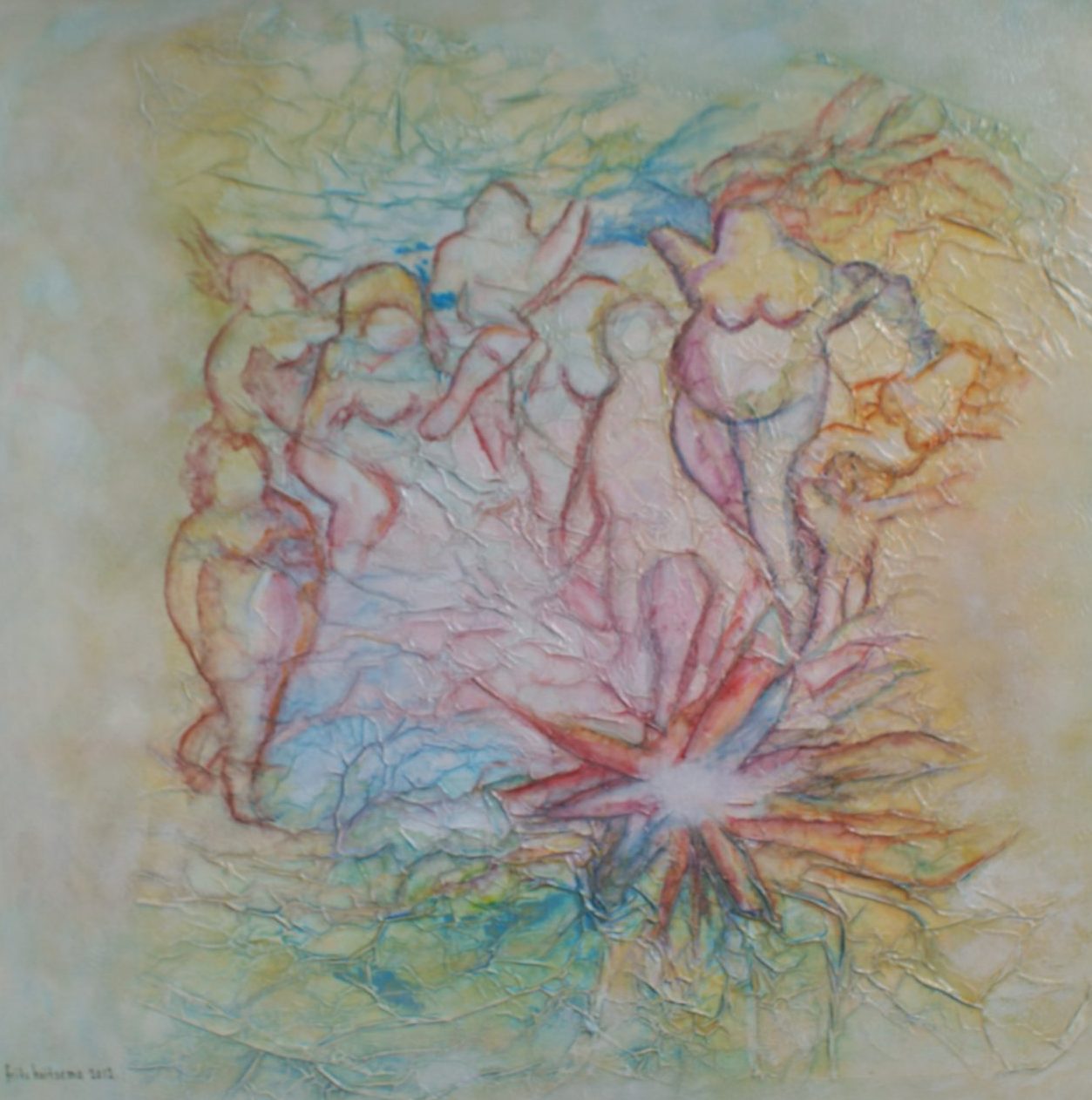 Een globale impressie van het schilderij "Vrouwenemancipatie" 50x50cm.