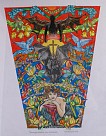Ontwerp voor een tattoo over de hele rechterarm. Kleurpotlood op tekenkarton en ingelijst in een aluminium lijst met kwartsglas.