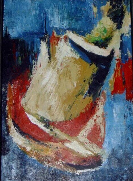 Kleurig intuïtief geschilderd doek. Na later bleek lijkt het op een fles champagne in een cooler. vandaar de naam.