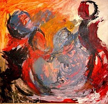 Een globale impressie van het schilderij "Family" 100x100cm.