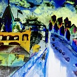 Een globale impressie van het schilderij "Marlene der blauwe engel" 30x40cm.
