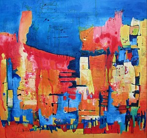 Een globale impressie van het schilderij "Colorful Nature" 140x130cm.