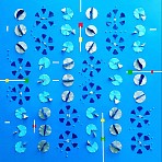 Een globale impressie van het schilderij "Flaky Art Blues" 70x70cm.