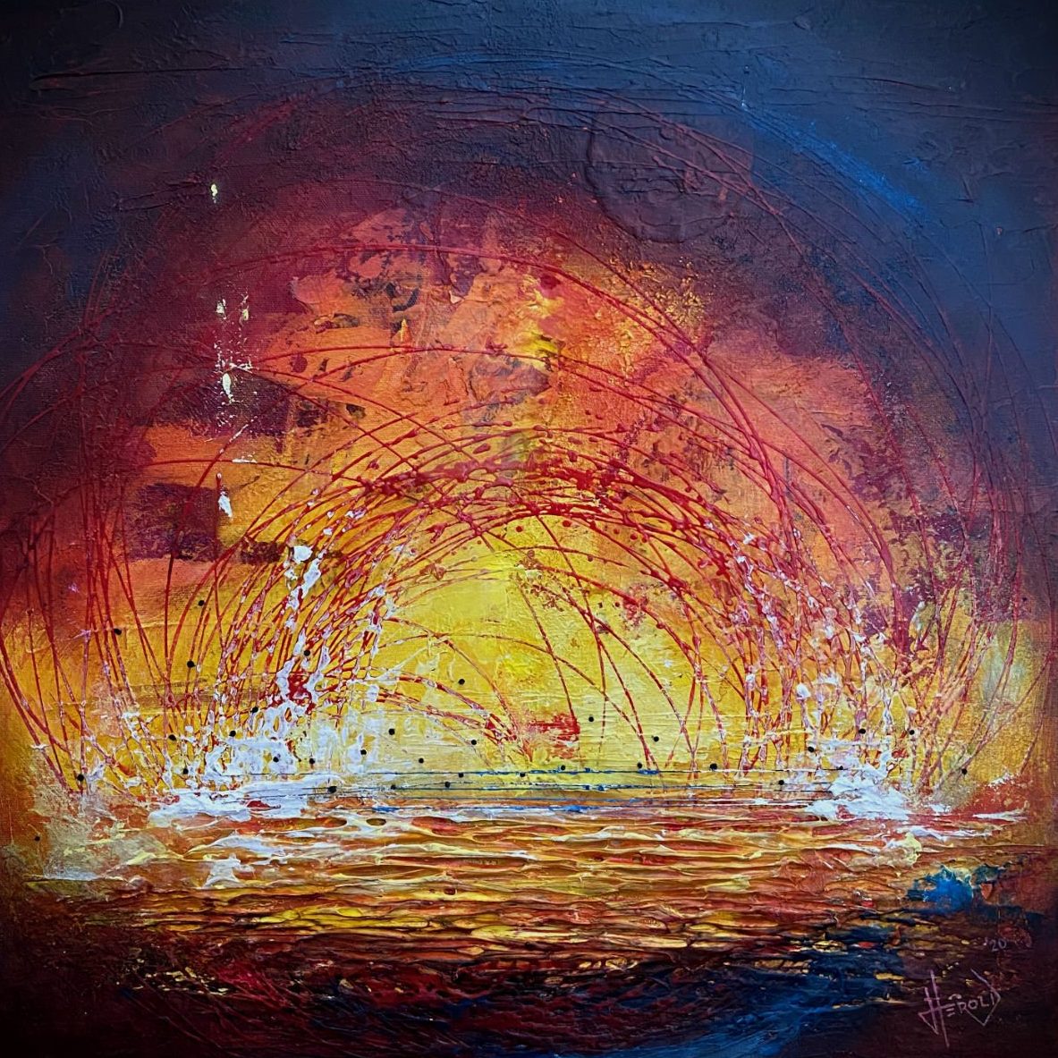Een globale impressie van het schilderij "Unusual Heat" 50x50cm.