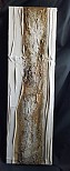 Dit is een doek uit een serie van 4. Allen dezelfde omber kleur en zelfde materialen. En allen even bijzonder en boeiend.