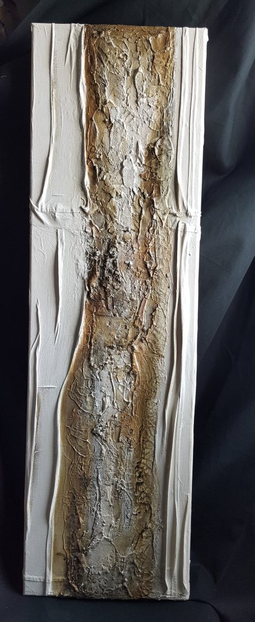 Ik verwerk graag de structuren uit de natuur in mijn werk.Denk hierbij aan boomschors, droge aarde, golven van de zee.