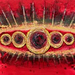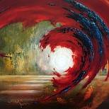 Acrylverf op gegrafeerd MDF-paneel Onderwerp: impact van coronavirus op de samenleving. Het einde of een nieuw begin?