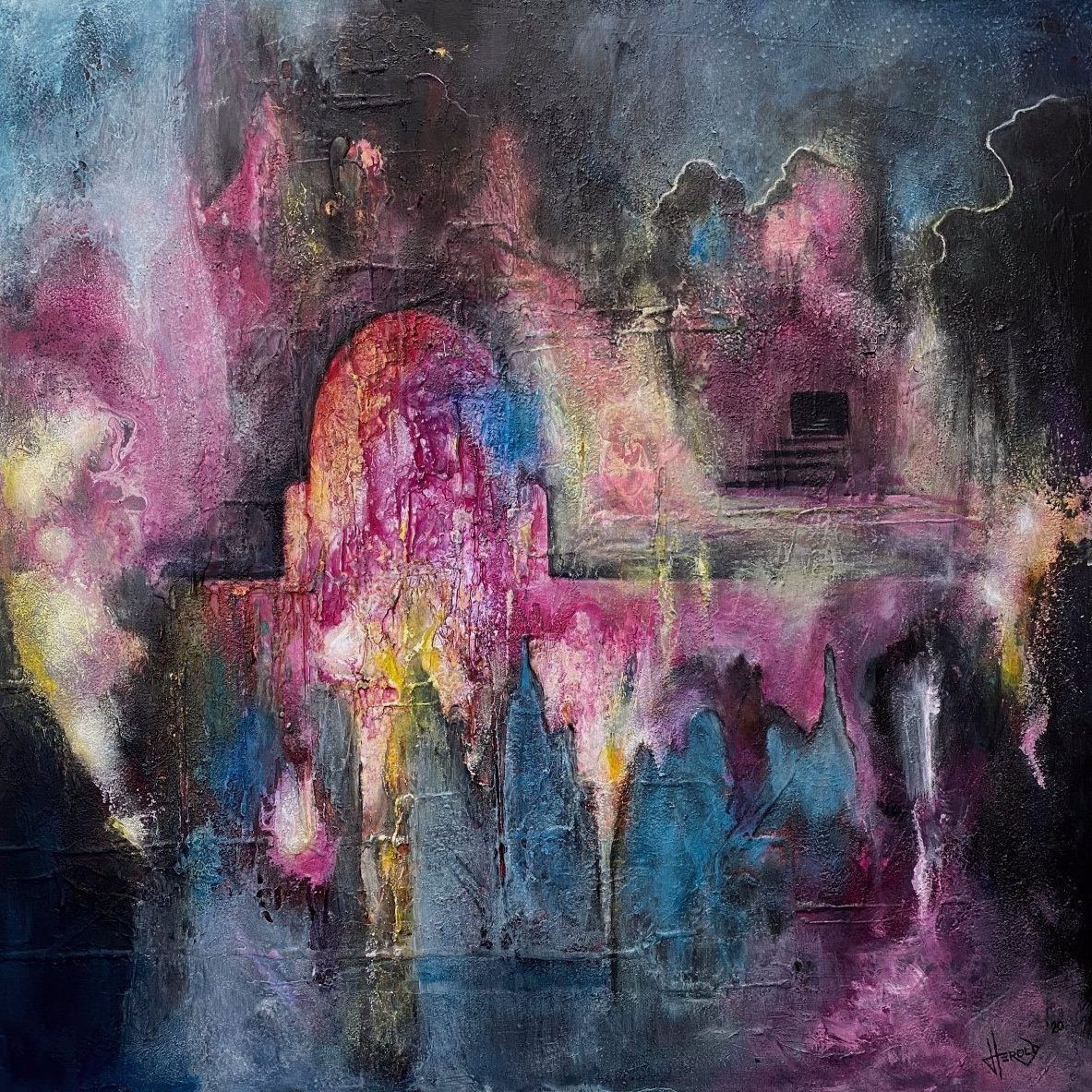 Een globale impressie van het schilderij "In Search of Wisdom" 70x70cm.