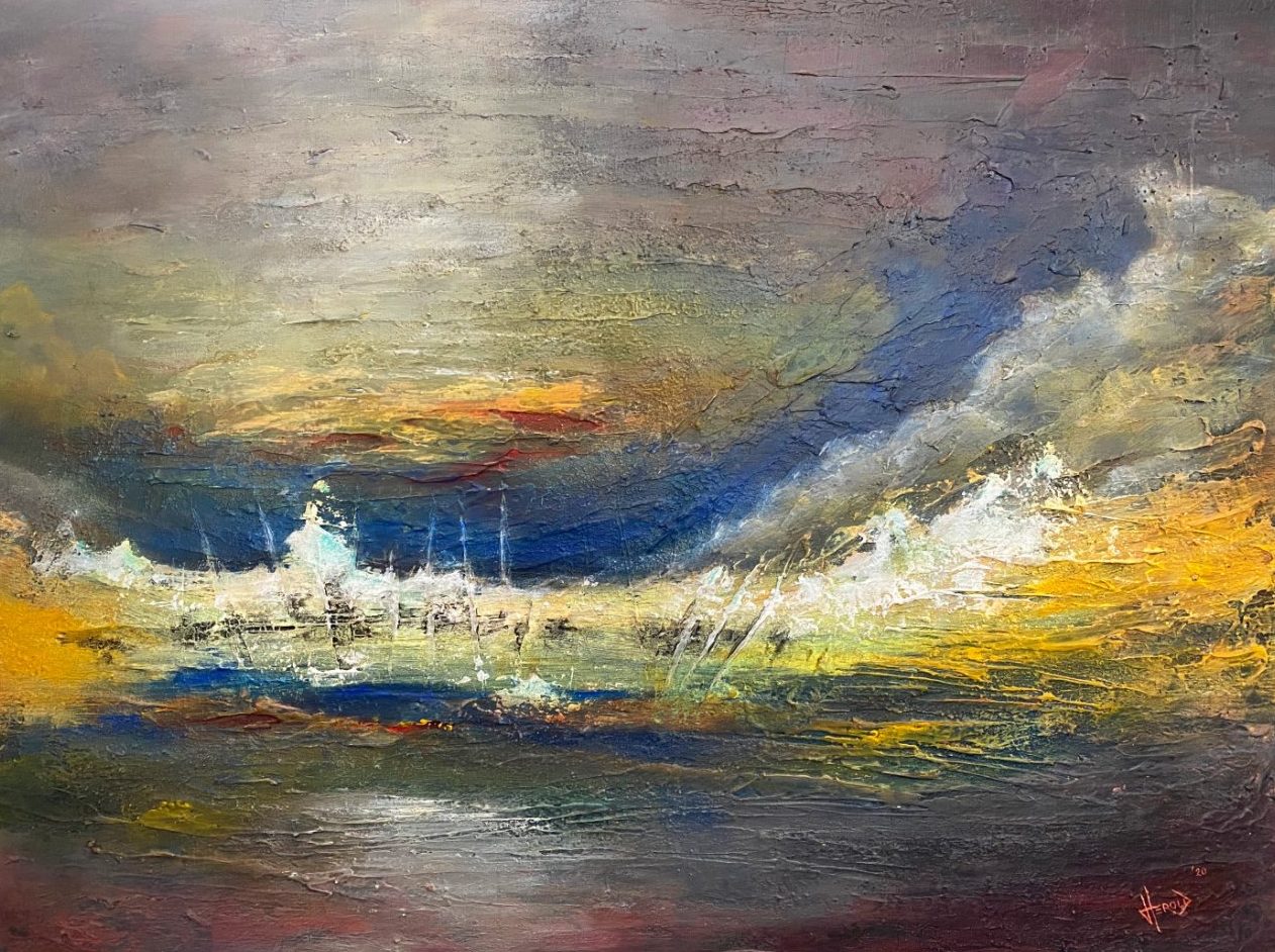 Een globale impressie van het schilderij "Ominous Rumble" 80x60cm.