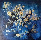 Abstract, contemporaryart, acrylverf, oilpantings, pruisisch blauw - goudblad...