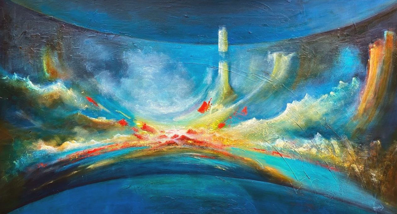 Een globale impressie van het schilderij "Warped Perspective" 180x100cm.