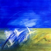 Een globale impressie van het schilderij "For your eyes only" 80x80cm.