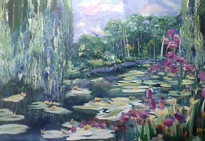 Een globale impressie van het schilderij "Tuinen van Giverny (2)" 140x100cm.