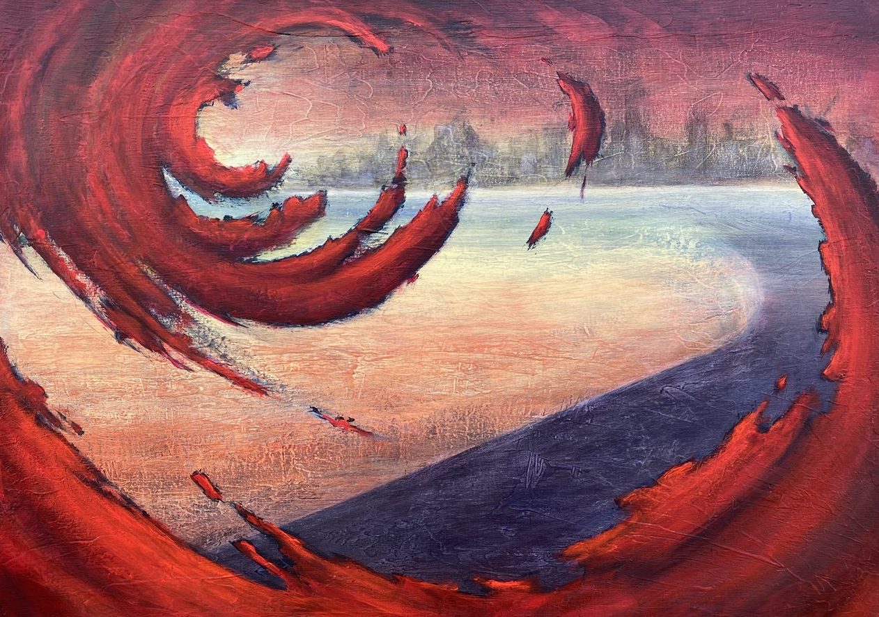 Een globale impressie van het schilderij "Road to Ruin" 70x50cm.